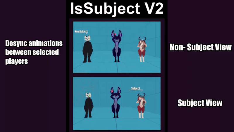 IsSubject prefab allows you to select a person (or group) to make an animation exclusively visible to them. Is Subject is essentially a whitelist for your animations, anyone not selected for the whitelist can't see the animation!